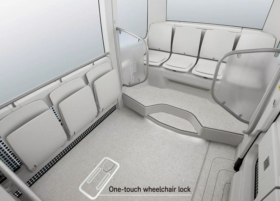 Внатрешноста е модуларна и може да се прилагодува – од превоз на патници до забавен простор или деловен центар.