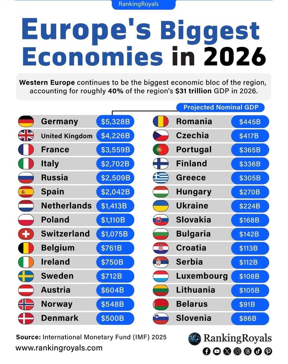 Најновите проекции од Меѓународниот монетарен фонд (ММФ) за 2026 година покажуваат тивко, но исклучително значајно поместување во економскиот центар на гравитација во Европа.