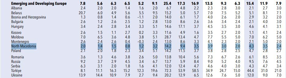 Како резултат на тоа, проекциите за глобалниот раст во најновиот Светски економски преглед (WEO) се ревидирани нагоре во однос на WEO од април 2025 година, но продолжуваат да означуваат ревизија надолу во однос на прогнозите пред промената на политиката. Се предвидува дека глобалниот раст ќе забави од 3,3 проценти во 2024 година на 3,2 проценти во 2025 година и 3,1 процент во 2026 година, при што напредните економии ќе растат околу 1,5 проценти, а пазарите во развој и економиите во развој малку над 4 проценти. Се предвидува дека инфлацијата ќе продолжи да опаѓа на глобално ниво, иако со варијации меѓу земјите: над целта во Соединетите Американски Држави – со ризици насочени кон нагорна линија – и намалени на други места.