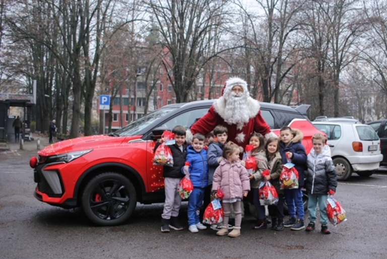Градинките „Калинка“ и „Црвенкапа“ беа исполнети со смеа, детска радост и празнична магија, Дедо Мраз пристигна со стил со црвениот Geely Coolray, носејќи подароци и безброј насмевки.