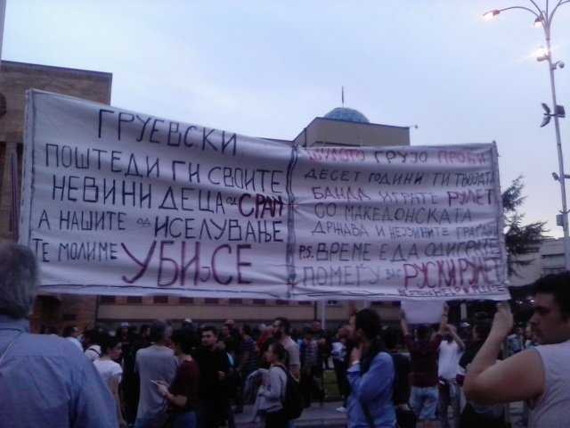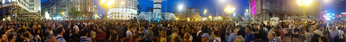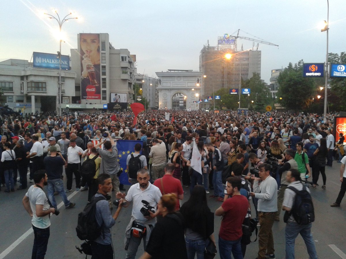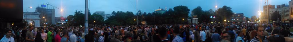 Во 18 часот граѓаните се собраа пред СЈО за да ја поддржат работата на Специјалното јавно обвинителство, по што се упатија кон Собранието. Секој момент групата се зголемуваше. Од собранието, прекуплоштадот Македонија, каде фрлија пена во фонтаната, се упатија кон Министерството за култура, кое, во „спомен на Скопје – 2014“ го „освежија“ со јајца и боја. Потоа, досега најмасовната група граѓани се упати и протестираше пред Владата.