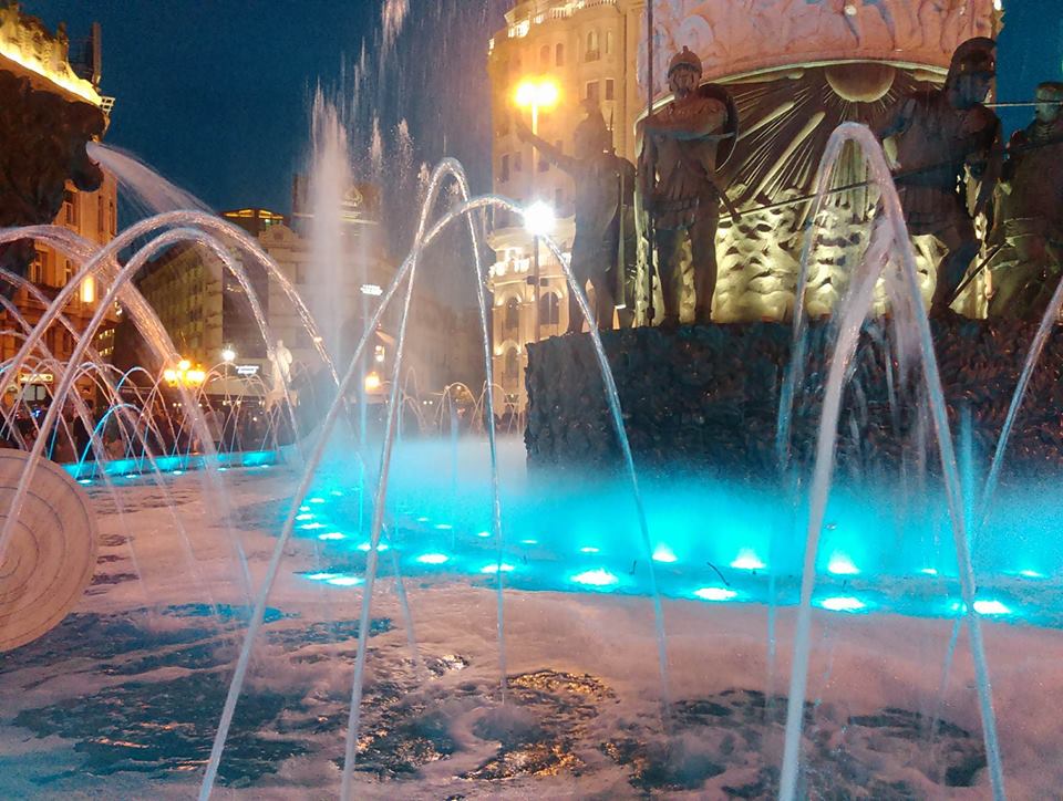. Фонтаната на плоштадот беше наполнета со прашак и боја за да се дезинфецирала а и колку за пењерење на парите на власта заедно во пакет и на владата и град Скопје преку проектот Скопје 2014