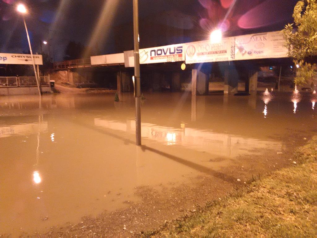 На Твитер беа објавени фотографии од Булевар Србија направени доцна ноќеска откако престана да врне. На нив се гледаат пшолседиците ос поплавата и автомобилите кои останаа заглавени, до кровот.