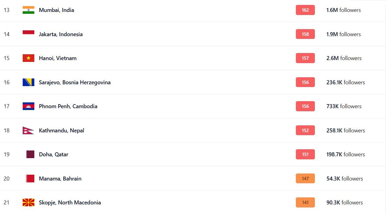 Скопје е на 21-то место во светот по загадување вечерва или втор во Европа, веднаш зад Сараево, кој е на прво место во Европа и 16-ти во светот. Веднаш зад нас е Приштина (Косово).