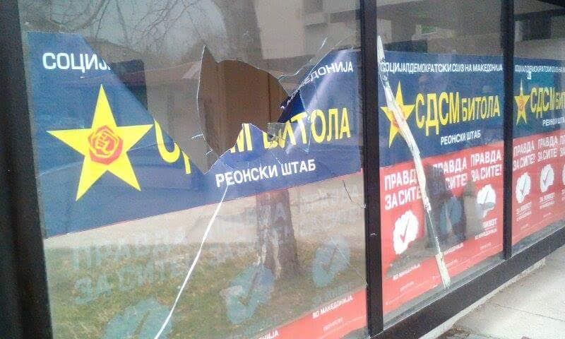 Пријавени се на надлежните органи инцидентите изминатото денонокие, во коишто на сличен начин, со фрлање камења се искршени надворешни прозорци на неколку штабови на СДСМ во Кланица – Битола, во Ново Лисиче – Скопје, во Сопиште и во Охрид.